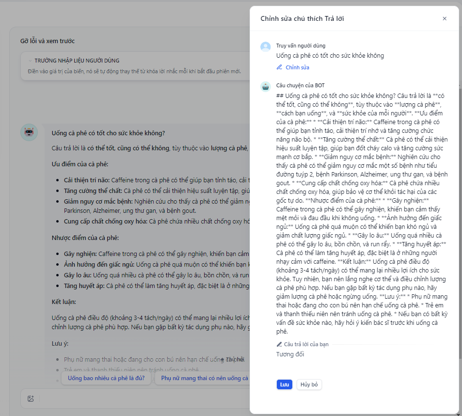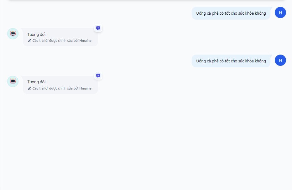 Nhập lại cùng một câu hỏi của người dùng và hệ thống sẽ sử dụng chú thích đã lưu để trả lời trực tiếp câu hỏi của người dùng.