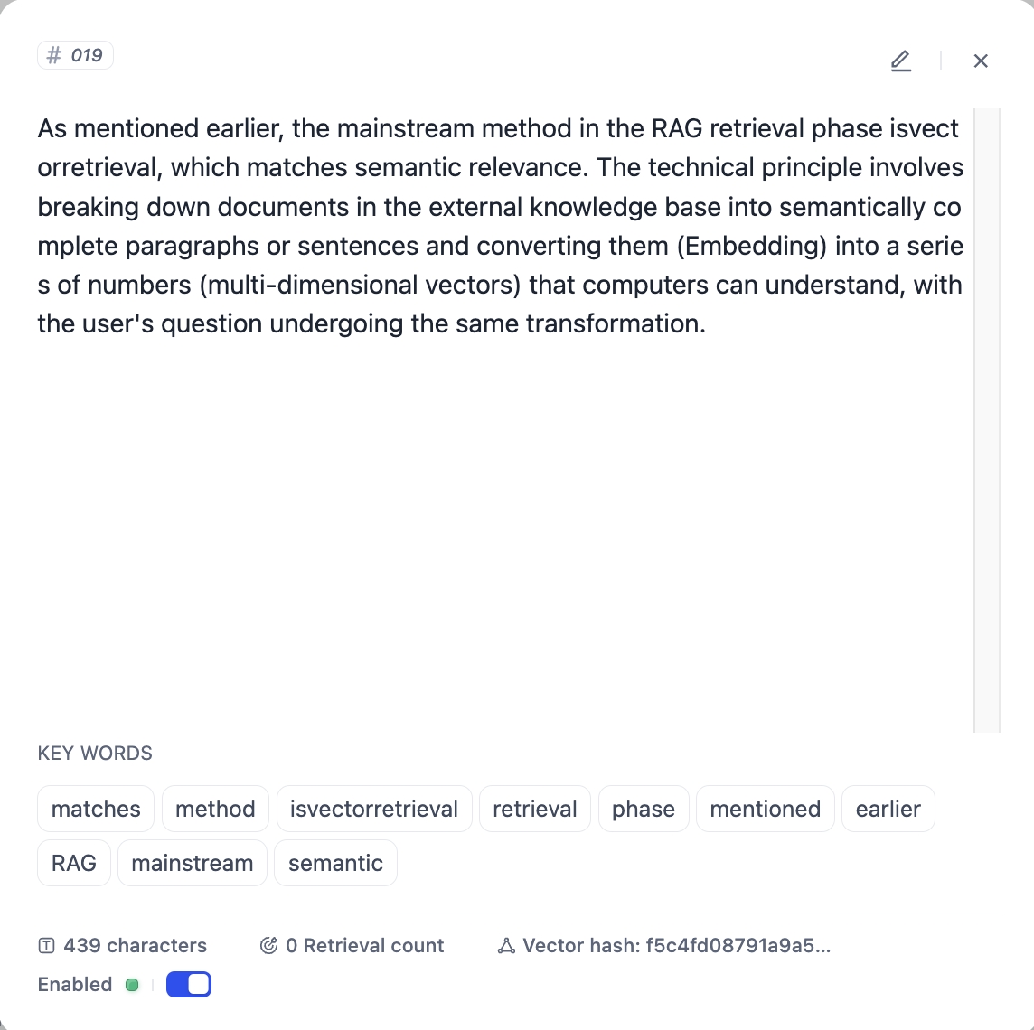 Thổ Thần cung cấp tính năng kiểm tra truy xuất văn bản để gỡ lỗi các hiệu ứng thu hồi theo các phương pháp truy xuất và cấu hình tham số khác nhau. Bạn có thể nhập các câu hỏi phổ biến của người dùng và kiểm tra, sau đó xem kết quả phần bên phải.